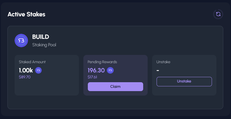 By using this button, you also receive an additional reward of **0.015 $BUILD** each time.