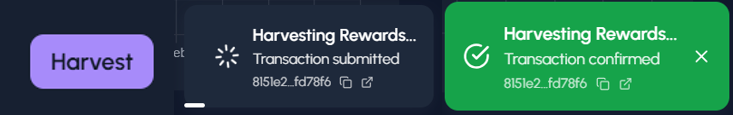 Before claiming your rewards, it is recommended to use the **Harvest** button to ensure your earnings are up-to-date.